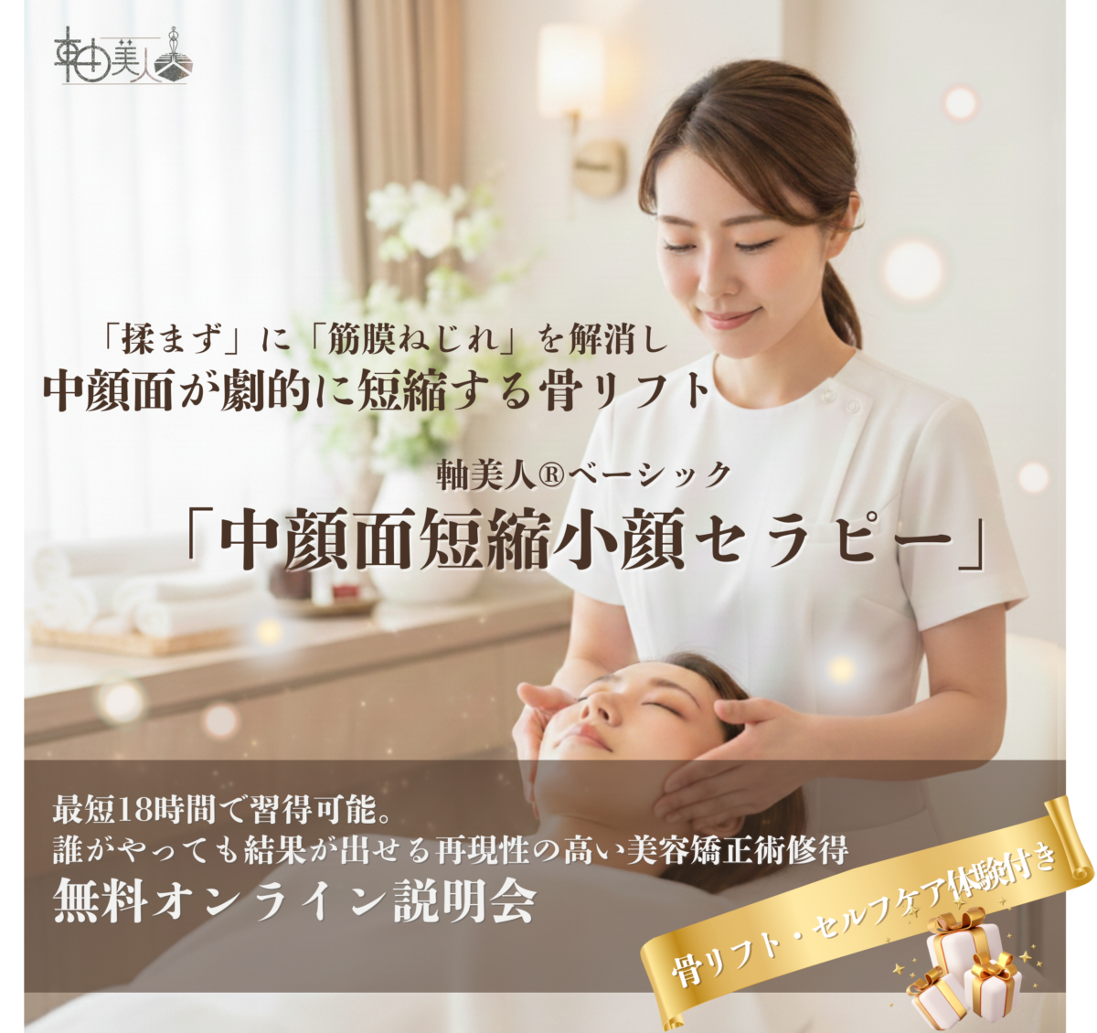 顔の筋膜ねじれを整え、骨から引き上げ中顔面を短くする軸美人®ベーシック手技は、こんな方におすすめです。