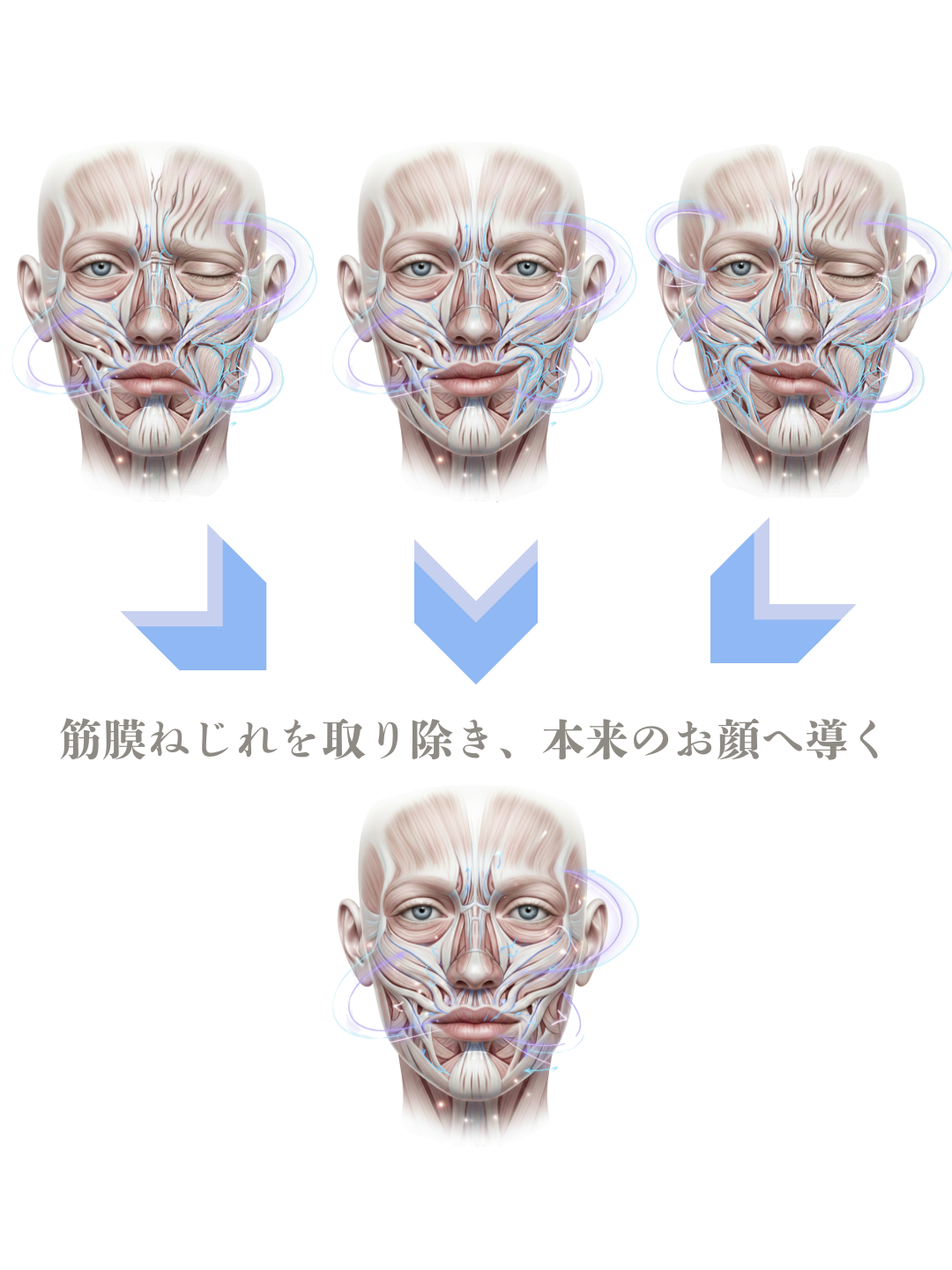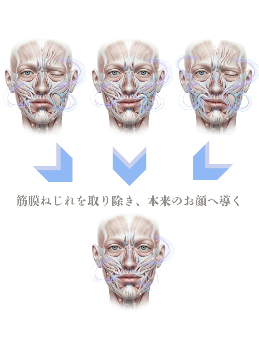 顔の左右差問題は「顔の筋膜のねじれ」から始まります。