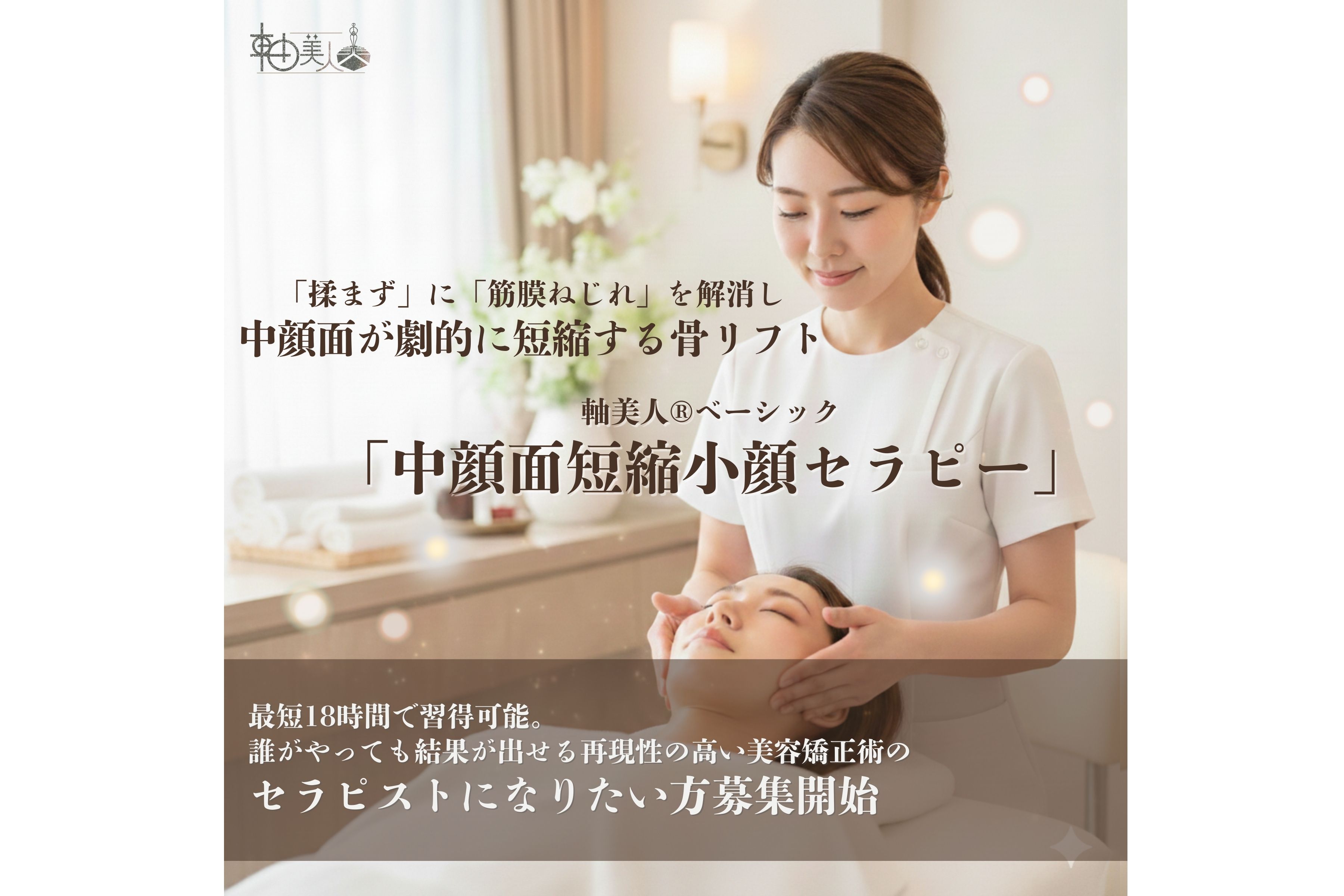 顔の筋膜ねじれを取り除く「中顔面短縮小顔セラピー」は、従来の「揉む」手技とは違います。
